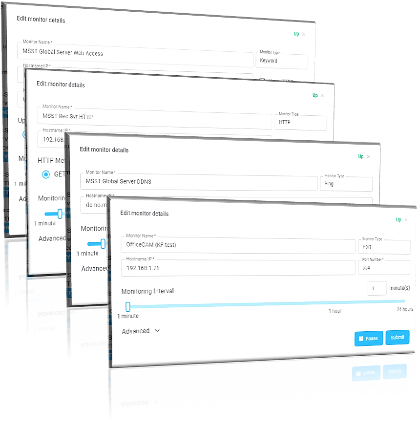 Real-time monitoring with multiple protocols (HTTP, Ping, Keyword)