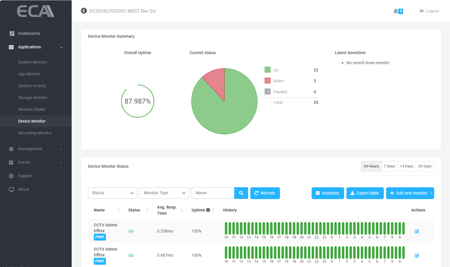 Current Status further breaks down the number of devices that are currently up and those that are down, making it easy to assess system health at a glance.
