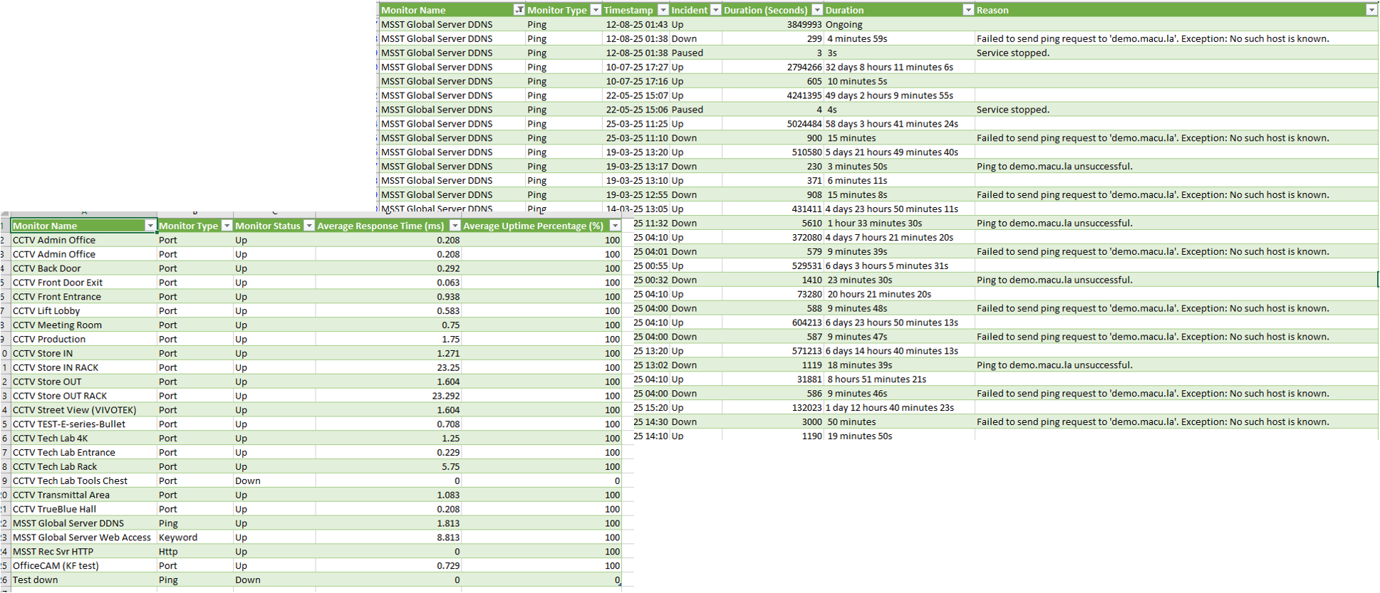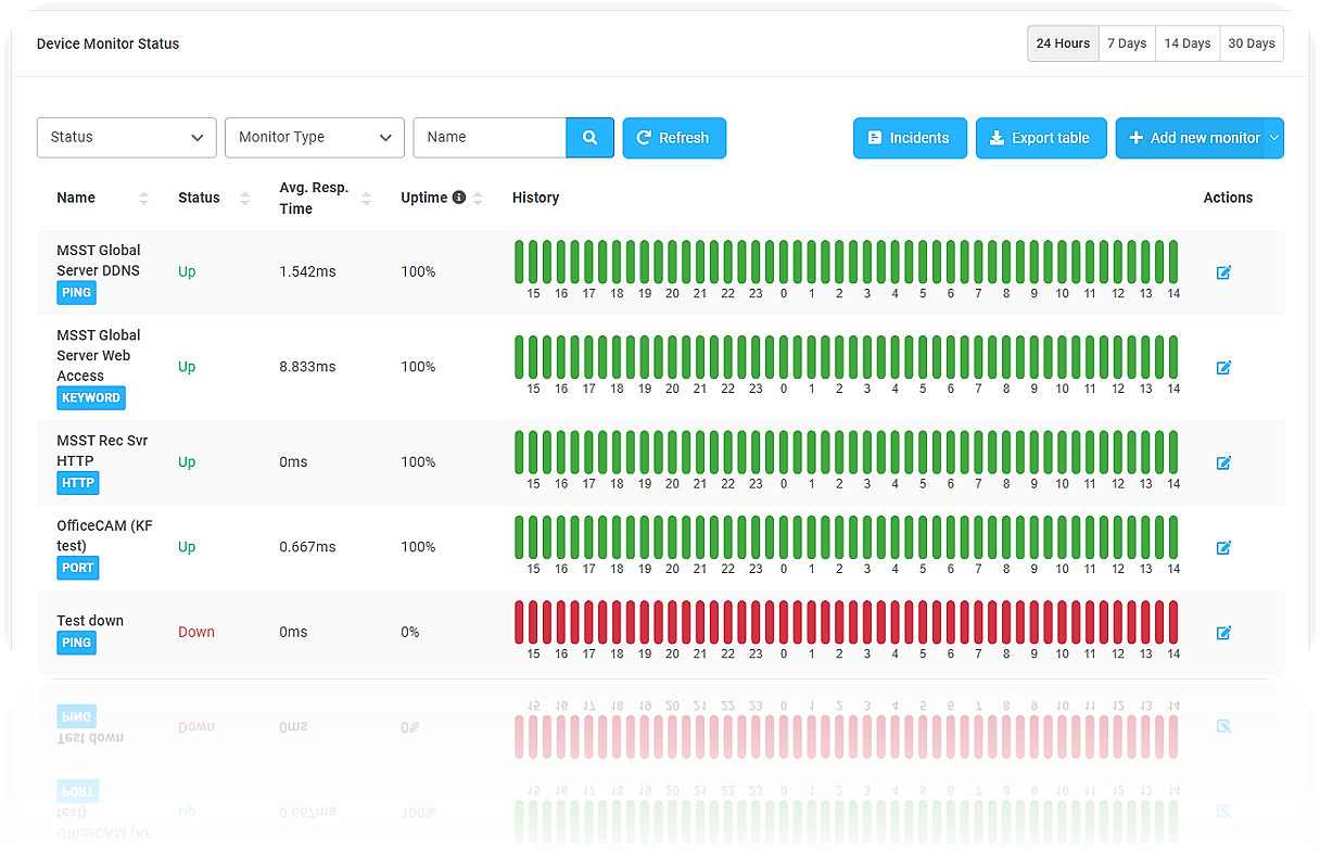 The Export & Reporting feature makes it simple to share and analyze results. All monitoring data can be exported into CSV files, allowing you to create detailed uptime reports for audits, compliance, or deeper analysis with just a few clicks.